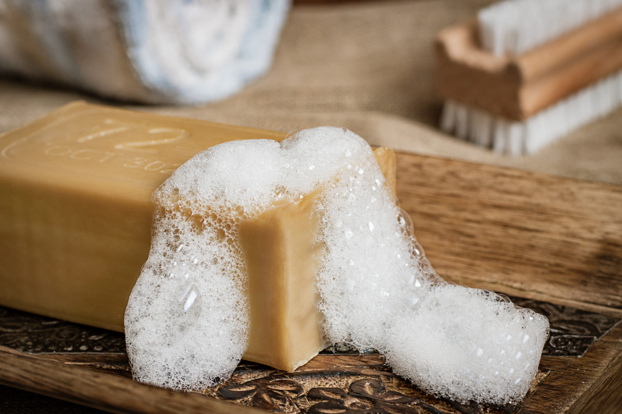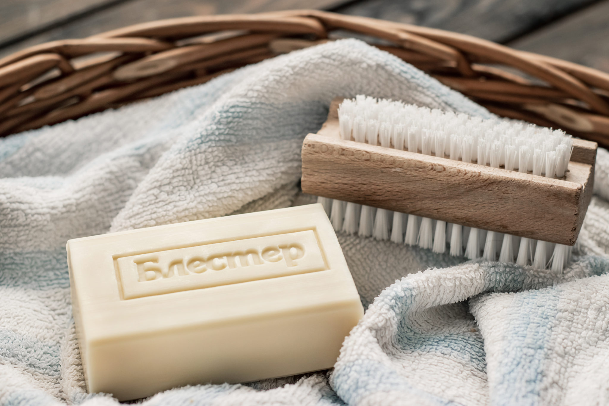 Za to niezłym wyzwaniem okazało się mydło. Szare dokładnie rzecz ujmując. Jak tu pokazać w ciekawy, nienachalny sposób coś co nawet z nazwy jest "szare"? Gdyby to był produkt w stylu handmade, to można by się pokusić o jakiś rustykalizm. W tym przypadku to mydło do prania więc trochę mi się ta koncepcja gryzła. Jakoś udało mi się wybrnąć, a klient jest zadowolony ze zdjęć (a to jest najważniejsze).
